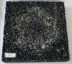 Grundlage zur Bewertung verschiedener Korngrößenverteilungen bilden zunächst computerbasierte Modellberechnungen zur Bestimmung des Einflusses auf Hohlraumgehalt und -struktur (Bild 1). Darüber hinaus soll durch die anschließenden Untersuchungen (u.a. Oberflächenverschleissprüfungen (Bild 2)) der PA-Gemische ein Bewertungshintergrund für den Einfluss der Mischgutzusammensetzung bezüglich der Dauerhaftigkeit geschaffen werden.